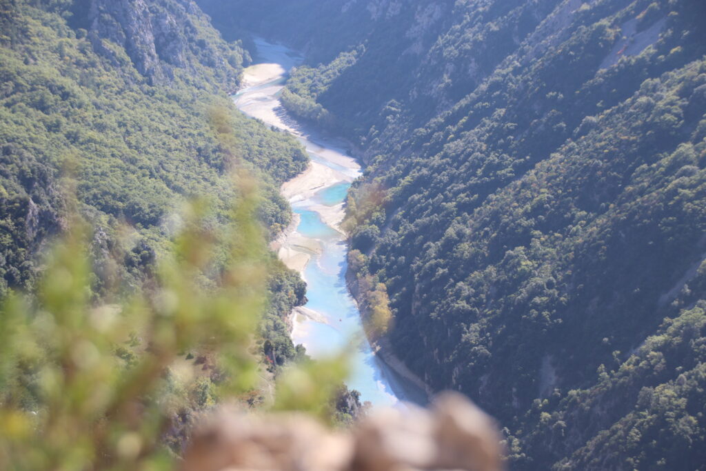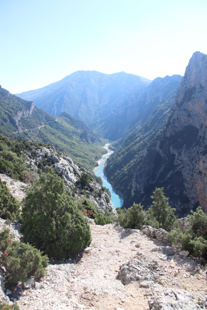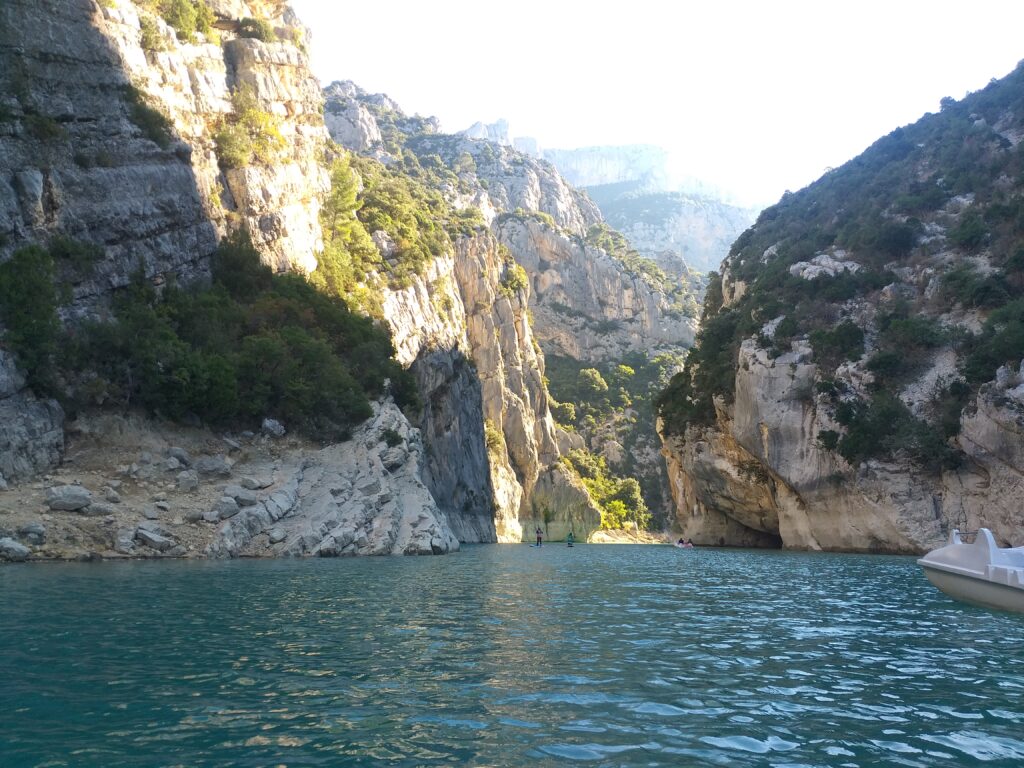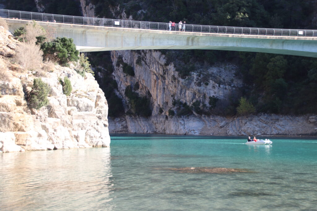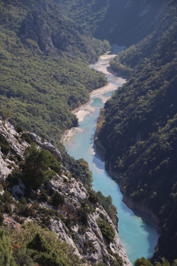 Die Verdonschlucht – ein Ziel für alle, die gerne Natursport machen. Wandern, Kanu oder Tretboot fahren, schwimmen oder einfach am Strand des Lac de Saint-Croix entspannen wollen. Wir haben die Verdonschlucht mit dem Kanu ein wenig erkundet. Im Herbst ist der Wasserstand, wie an den Bildern zu erkennen, sehr niedrig und eine Tour ist schnell vorbei. Wir hatten sehr freundliche Kanuvermieter, die uns darauf auch hingewiesen haben und uns zu dem 1 Stunden Tarif für 20 Euro geraten haben. Die Stunde reicht sehr gut aus um die maximal zwei Kilometer entspannt in die Schlucht zu paddeln, der Rückweg hat ja immerhin ein wenig Strömung. Im Sommer kann man aber auch entspannt 2 Stunden in der Schlucht verbringen und gelegentlich in der Verdon schwimmen.