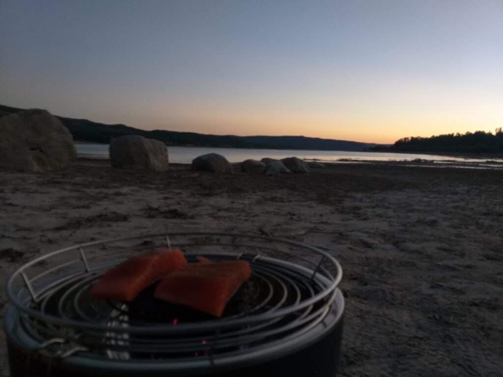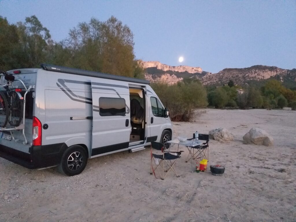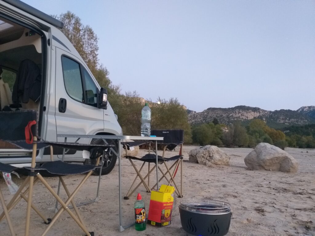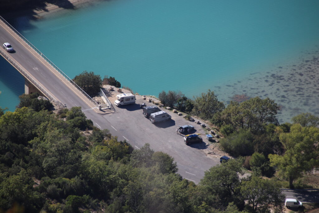 Um den See gibt es mehrere Campingplätze und aus einem früheren Familienurlaub kann ich den Campingplatz Camping Les Pins sehr empfehlen. Im Herbst jedoch ist Les Salles-sur-Verdon sehr leer und nur wenige Camper verirren sich dort hin, was zur Folge hat, dass kein Campingplatz offen war. Stattdessen kann man ohne Probleme direkt an der Pont du Galetas stehen oder an anderen Stellplätzen direkt am See und entlang der D957. Wir entschieden uns für einen Stellplatz direkt am See und haben auch direkt gegrillten Lachs genossen. Immer wieder ein Genuss an solchen Orten und zeigt in meinen Augen welchen großen Vorteil das Campen hat. Wir mussten ihn für die Nacht leider verlassen, um der Partymusik zu entkommen und schliefen dann auf dem Aire de Camping Car Gratuit. Ein kostenloser Stellplatz ohne Entsorgungsmöglichkeit, der durch eine Baumreihe von der Straße getrennt wird. In der Nebensaison sicherlich eine gute Schlafgelegenheit, im Sommer könnte die Straße zu hören sein.