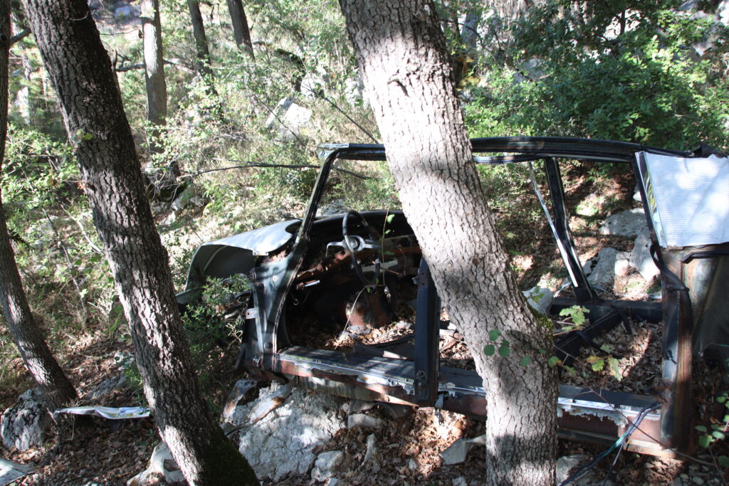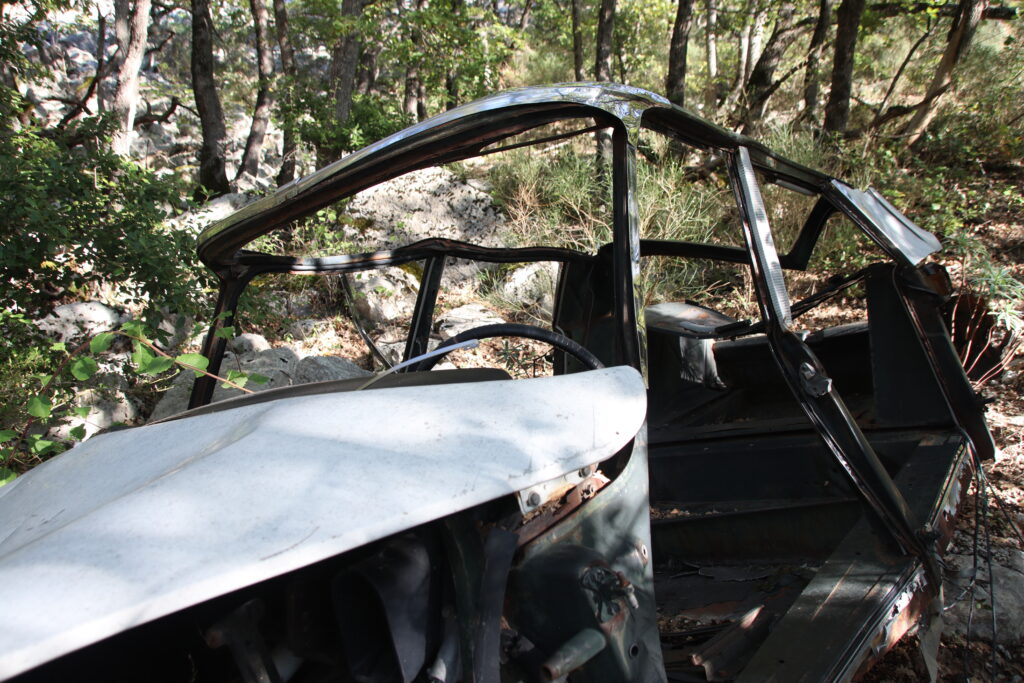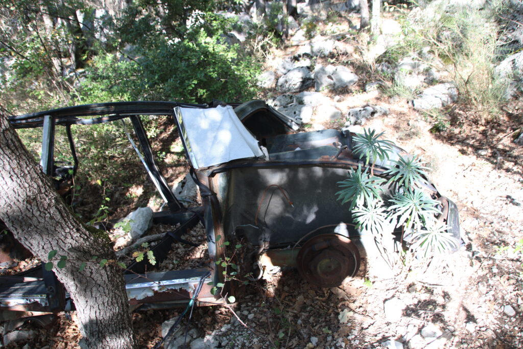 Auch hier findet man so manches ungewohnte in der Natur. Beim Abstieg fielen mir die Überreste eines Autos auf. Ich konnte nicht herausfinden, um welches Modell es handelt. Eins kann aber gesagt werden, das Auto liegt schon länger hier.